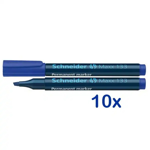 Der Schneider Permanentmarker Maxx 133 ist hervorragend geeignet zum Markieren und Beschriften von fast allen Materialien, auch Glas, Metall und Kunststoff. Seine Tinte ist schnell trocknend, geruchsarm, lichtbeständig, wisch- und wasserfest – ohne Zusatz von Toluol und Xylol. Die speziell entwickelte Spitze steht auf dem Schaftrand auf und ist dadurch gegen EindrĂĽcken in den Marker gesichert. Mit Cap-Off-Tinte, d.h. Sie können diesen Marker mehrere Tage offen liegen lassen, ohne einzutrocknen. AuĂźerdem ist er nachfĂĽllbar. Mit Keilspitze und einer Strichstärke von 1,0 – 4,0 mm. Bestellen Sie jetzt gĂĽnstig bei Oerter.