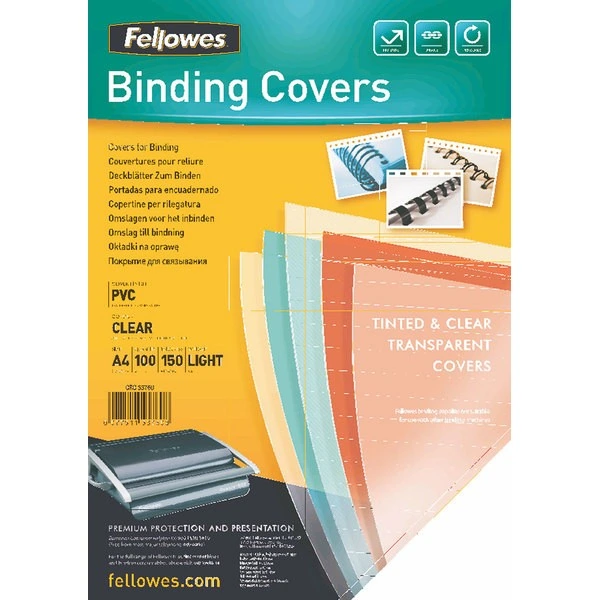 Das Fellowes Deckblatt aus PVC eignet sich ideal für Draht- und Plastik-Bindemaschinen. Das Fellowes Deckblatt aus PVC im Format DIN A4 ist transparent und flexibel für Ihre Projekte einsetzbar.