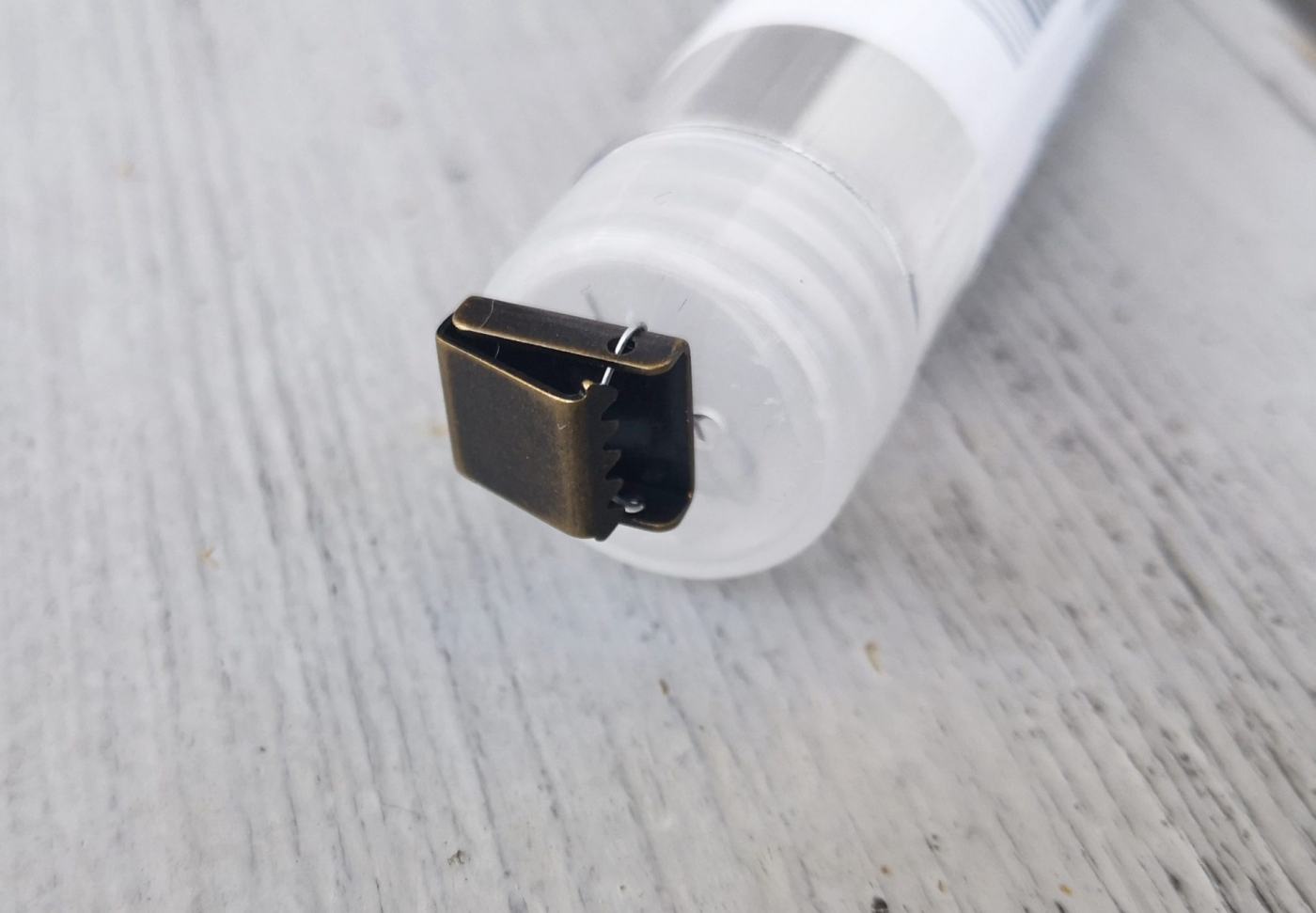 Verarbeitung: Die Flachkordel in das Kordelende legen und dieses dann mit einer Zange vorsichtig zusammendrĂĽcken!