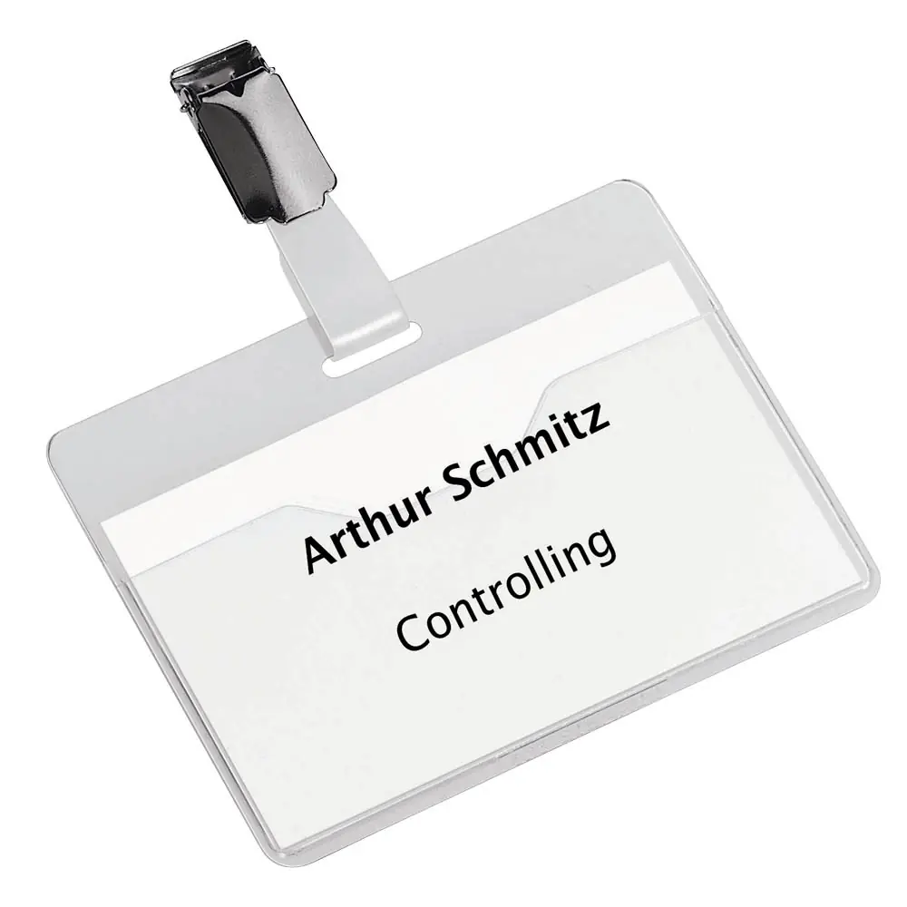 Der Name liegt einem auf der Zunge, das Gedächtnis arbeitet auf Hochleistung. Mit den Namensschildern von DURABLE können Sie sich in Zukunft entspannt den wichtigen Dingen widmen. Ein Blick auf das schicke Schild genügt und der Name Ihres Gegenübers ist wieder präsent!