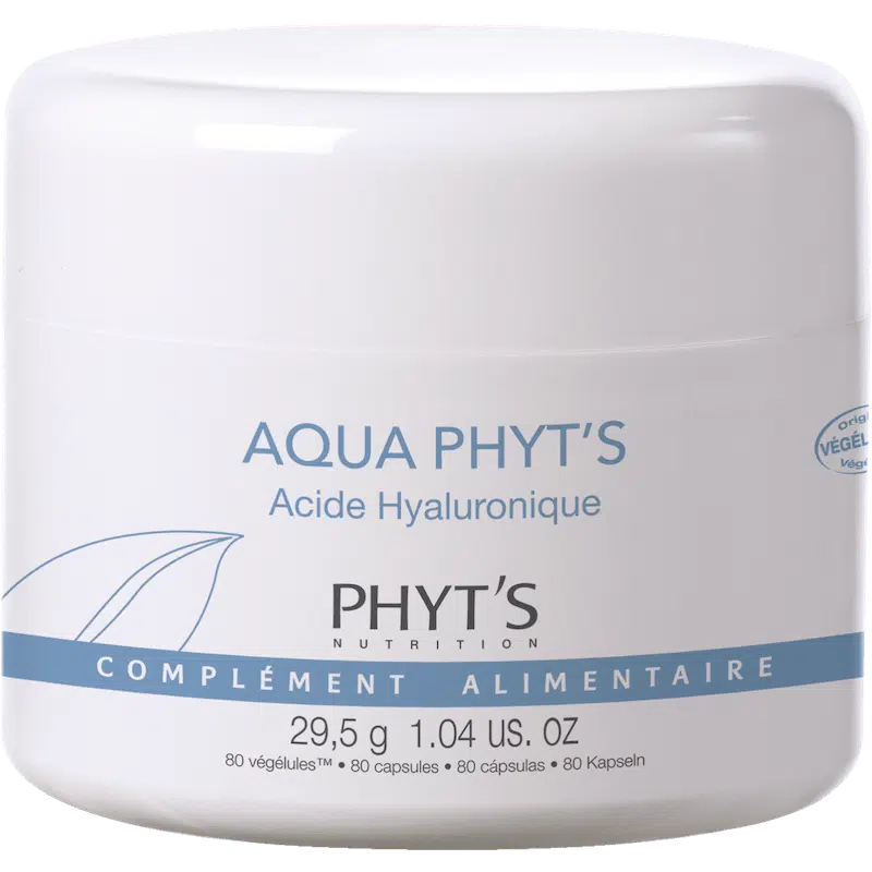 Acide Hyaluronique is a convenient nutritional supplement in capsule form for healthy beauty that comes from within. Acide Hyaluronique is part of Phyt’s Soins Hydratants Aqua line.