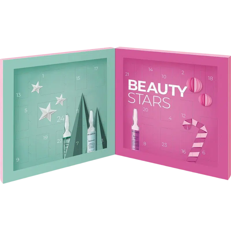 Tauchen Sie ein in die zauberhafte Welt des DR. GRANDEL Ampullen Adventskalenders – «Beauty Stars»! Dieser Adventskalender wird Ihre Vorweihnachtszeit in eine strahlende Hautpflege-Reise verwandeln, Tag fĂĽr Tag.