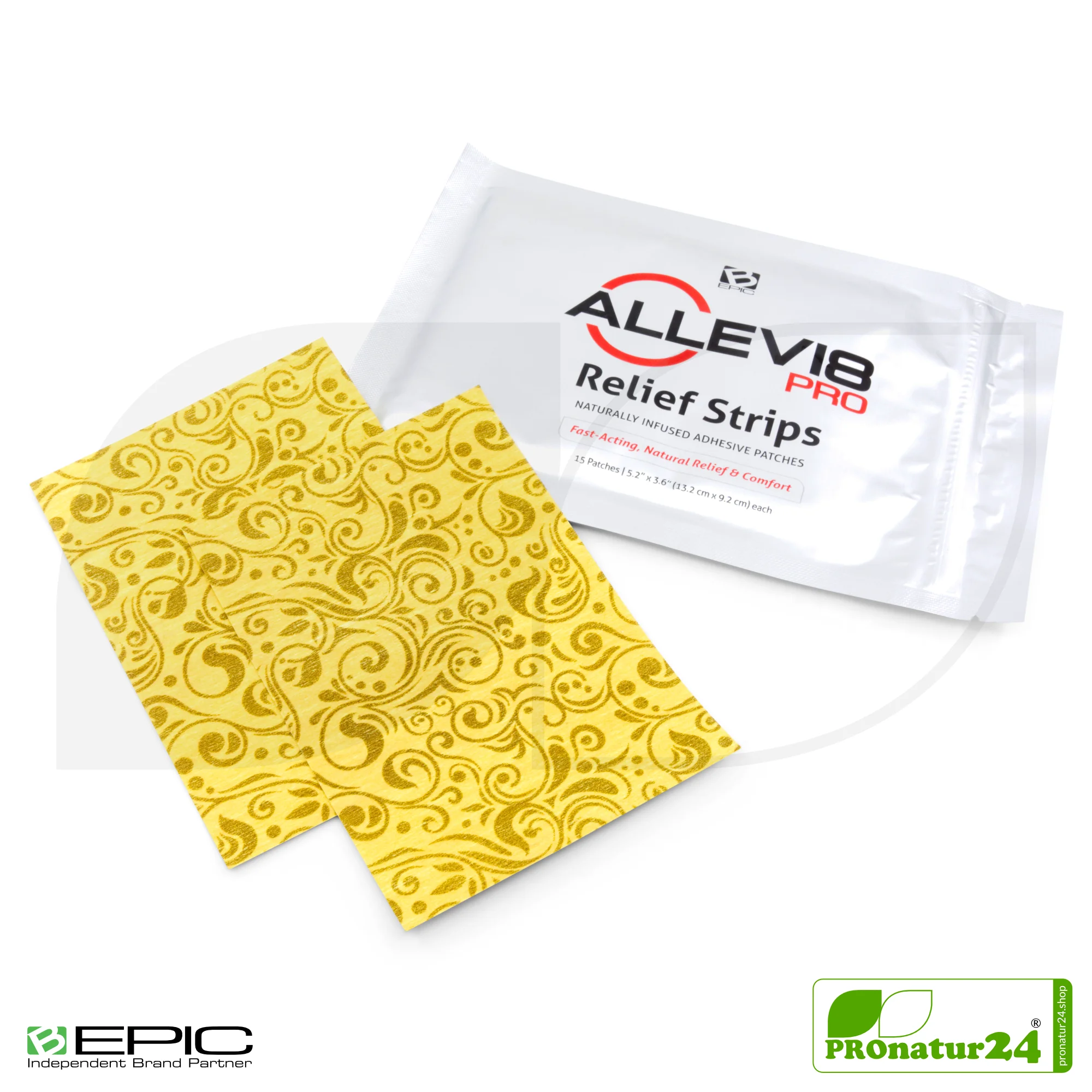 ALLEVI8 PRO lindert vorübergehend Verspannungen, Schmerzen und Steifheit. Unsere natürlich angereicherten Klebepflaster bieten schnell wirkende, gezielte Unterstützung und natürliche Linderung sowie ein beruhigendes Aroma den ganzen Tag und die ganze Nacht.
