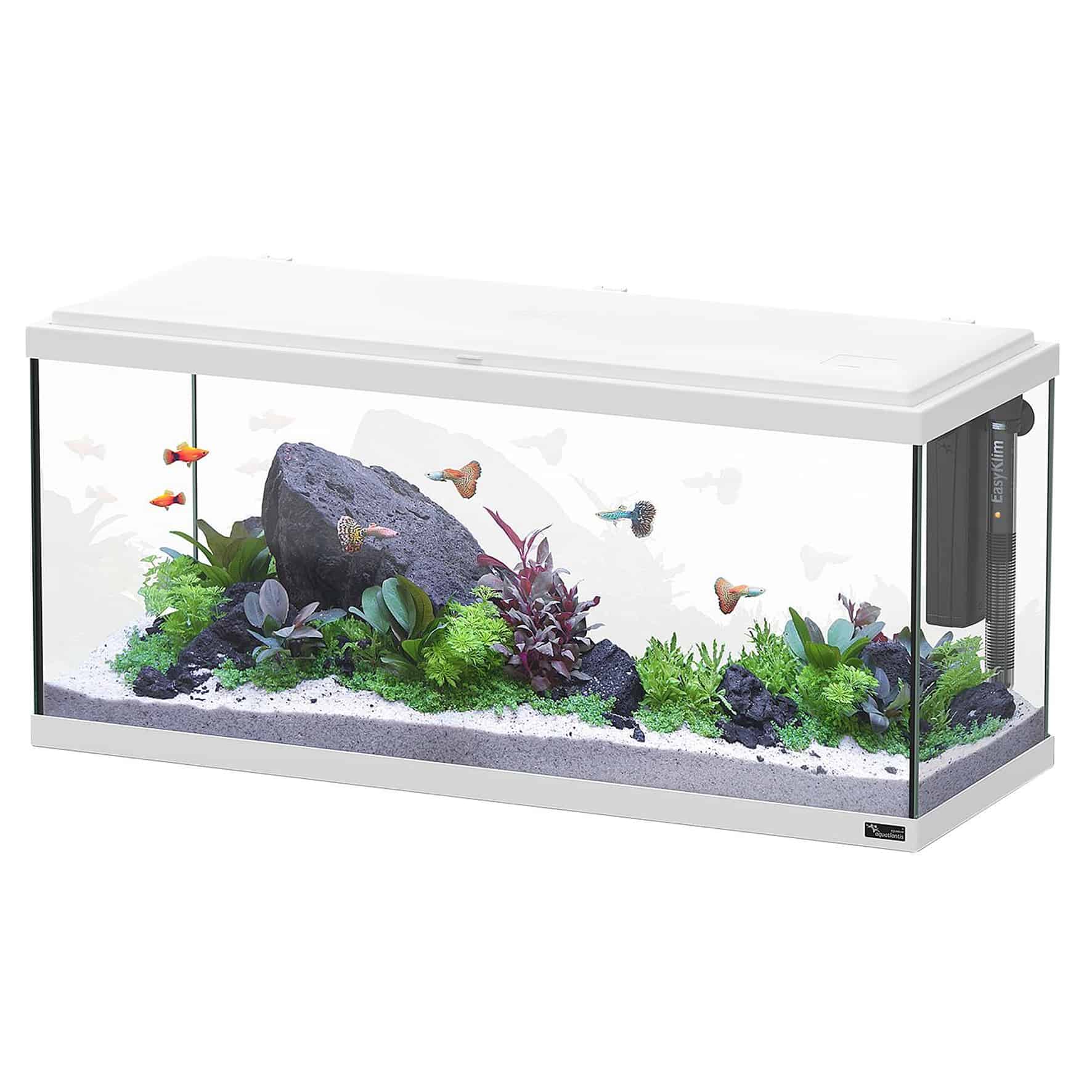 Im Lieferumfang dieses Aquariums sind alle notwendigen Komponenten enthalten. So haben Sie alles was für eine erfolgreiche Einrichtung und Pflege Ihres Aquariums nötig ist. Es handelt sich um ein hochwertiges Aquarium mit einem modernen Design, das sich den Bedürfnissen des Kunden anpasst. Erhältlich in schwarz oder weiß.