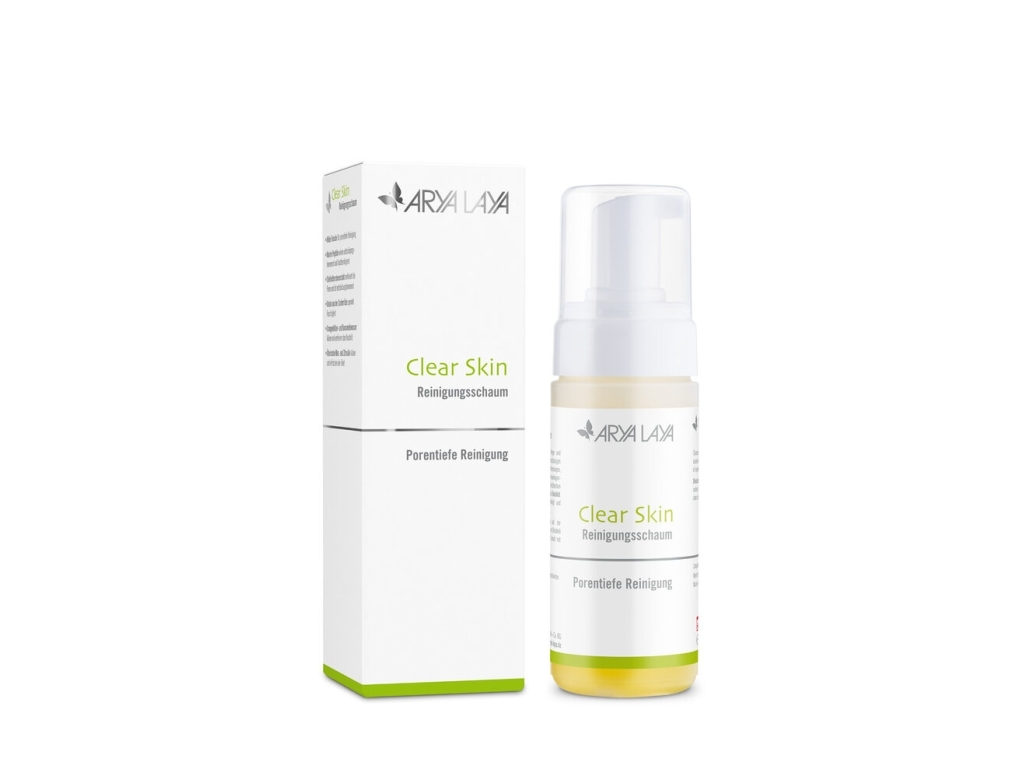 Tipp: Im Anschluss an die Reinigung mit ARYA LAYA Clear Skin Tonic erfrischen. Clear Skin Reinigungsschaum auch zur klärenden Körperreinigung von Armen und Rücken anwenden.