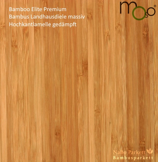 Moso Bambus Landhausdielen Bamboo Elite Premium Hochkantlamelle gedämpft sind 3-schichtig aufgebaut. Wir bieten diese Bambus Dielen mit fein geschliffener Oberfläche, lackiert oder vorgeölt an.