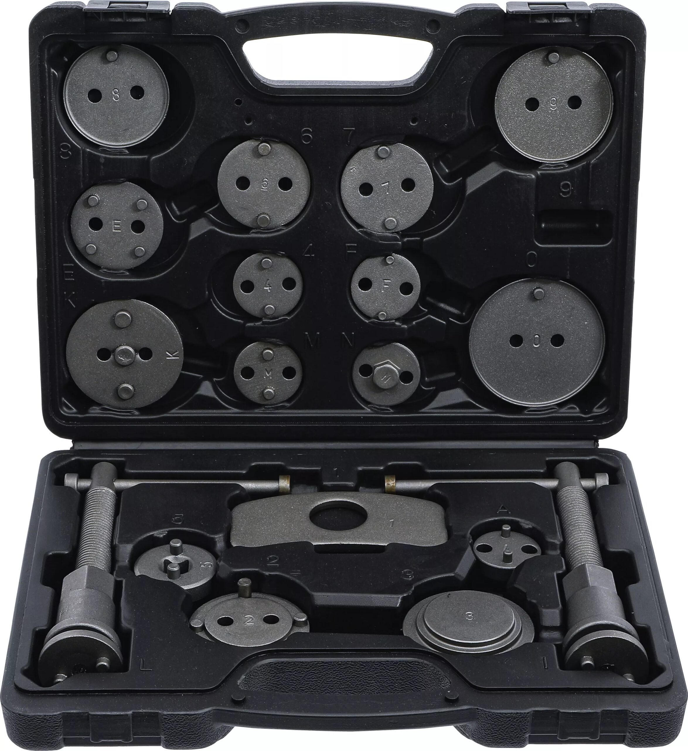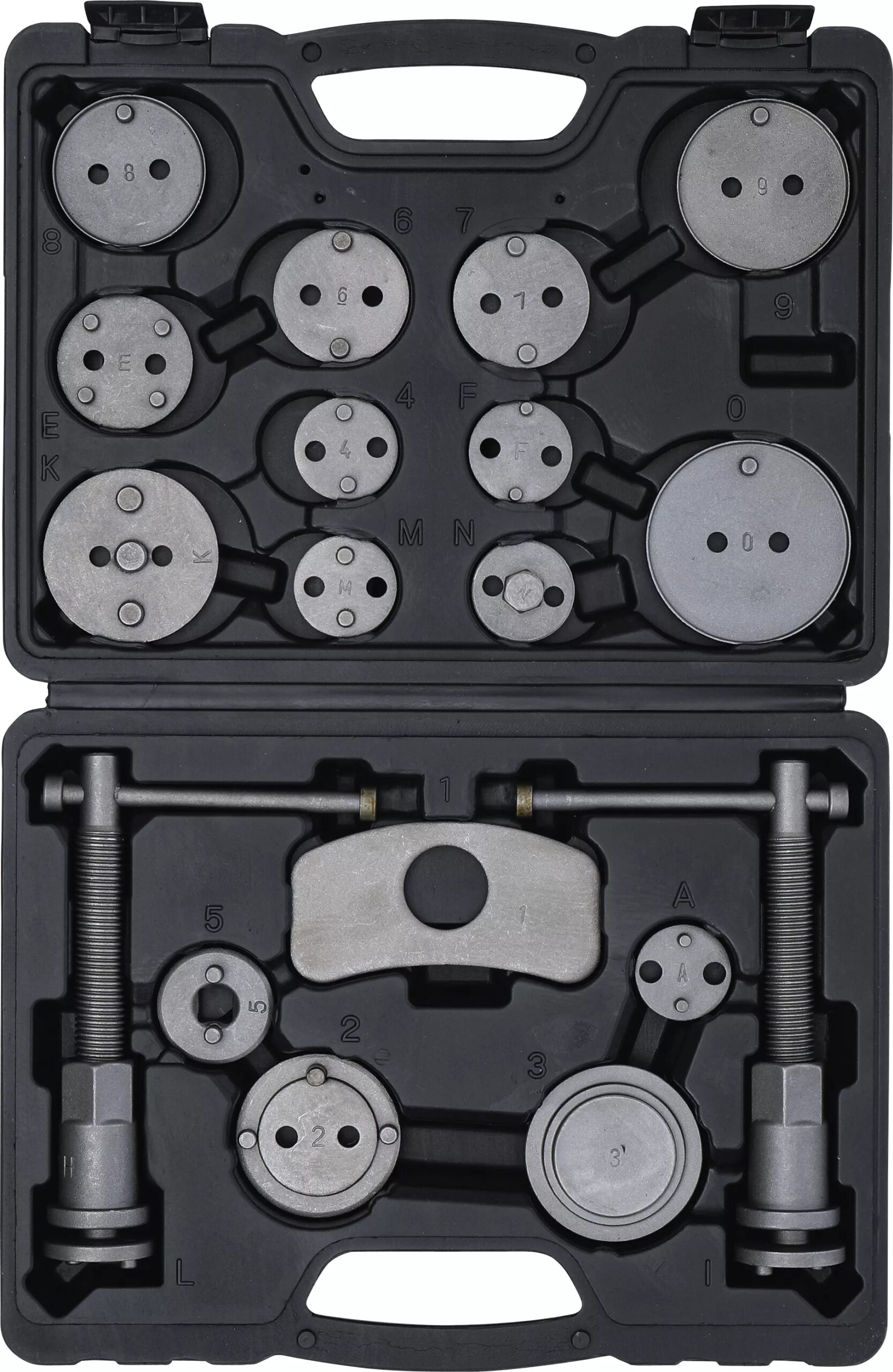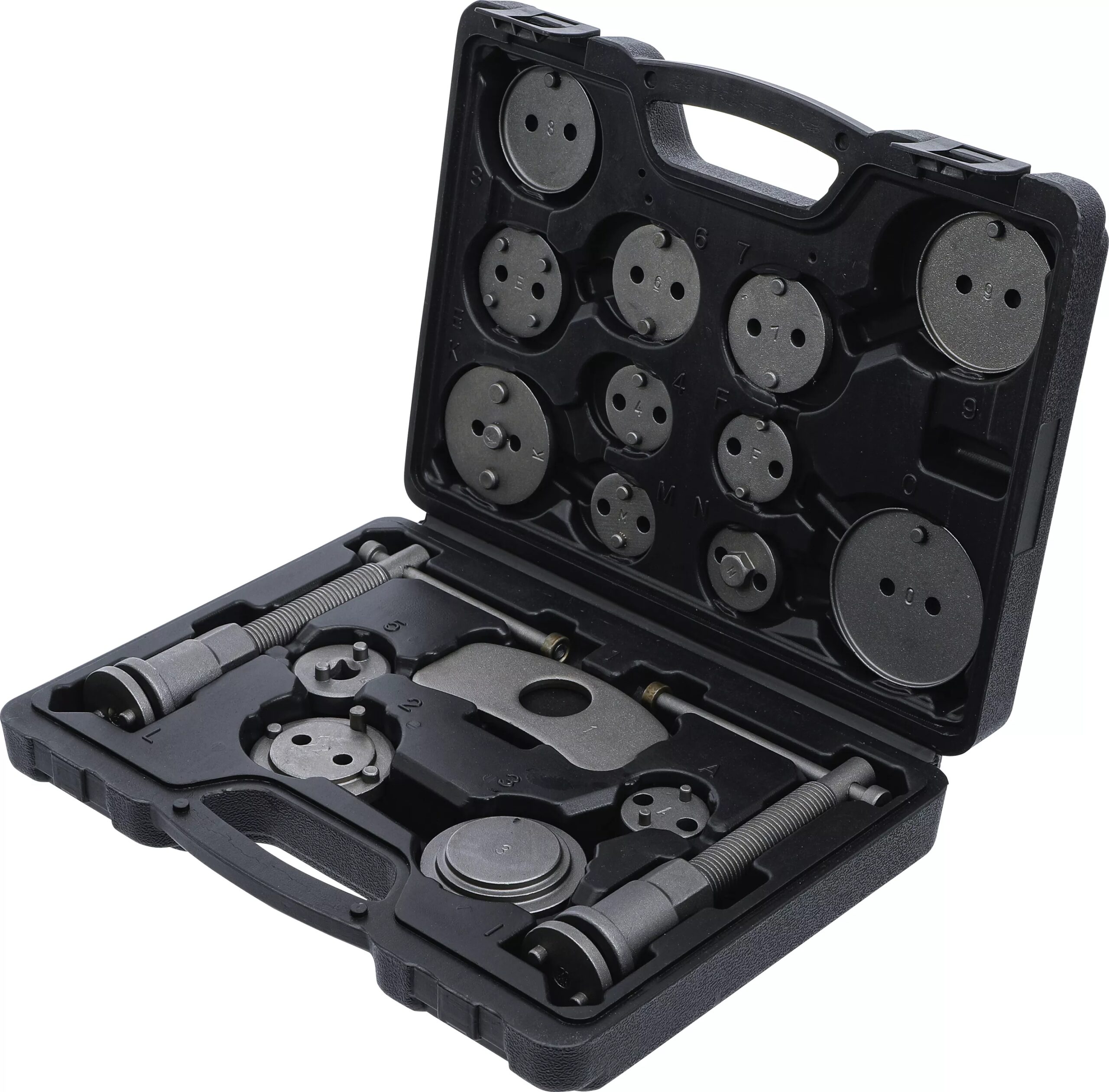 Der Bremskolbenrückstellsatz (18-teilig) ist das ideale Bremsenrückstellwerkzeug für Kfz-Werkstätten und ambitionierte Hobbyschrauber. Mit diesem Basisset lassen sich Bremskolben schnell, sicher und fachgerecht zurücksetzen. Durch die enthaltenen Spindeln mit Rechts- und Linksgewinde ist das Set universell einsetzbar und deckt eine Vielzahl gängiger Fahrzeugmarken ab.