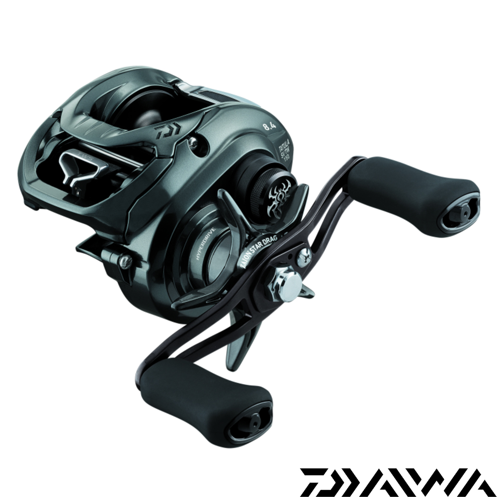 Die 24 Tatula SV TW 150 eignet sich insbesondere für etwas größere Köder von ca. 14g bis 100g und ist somit ideal für die leichtere Big Bait Angelei auf Hecht geeignet. Die Rolle beinhaltet das neuartige SV Boost System, ein zweistufiges SV Bremssystem, bei dem in der letzten Flugphase des Köders die Bremsleistung automatisch und kontrolliert leicht reduziert wird. Somit wird die Wurfweite erhöht, ohne dass es zu einem Überlaufen der Spule kommt. Das Hyper Drive Design mit dem kräftigem Hyper Drive Digigear und dem Hyper Double Support sorgt für eine optimale Kraftübertragung des Getriebes und reduziert Laufgeräusche. Das Hyper Armed Gehäuse aus Aluminium sorgt für eine optimale Lagerung des Getriebes im Rollenkörper. Der Hyper Tough Clutch Freilaufhebel springt auch bei kräftigen Würfen nicht ungewollt zurück. Mit 100mm langer Kurbel.