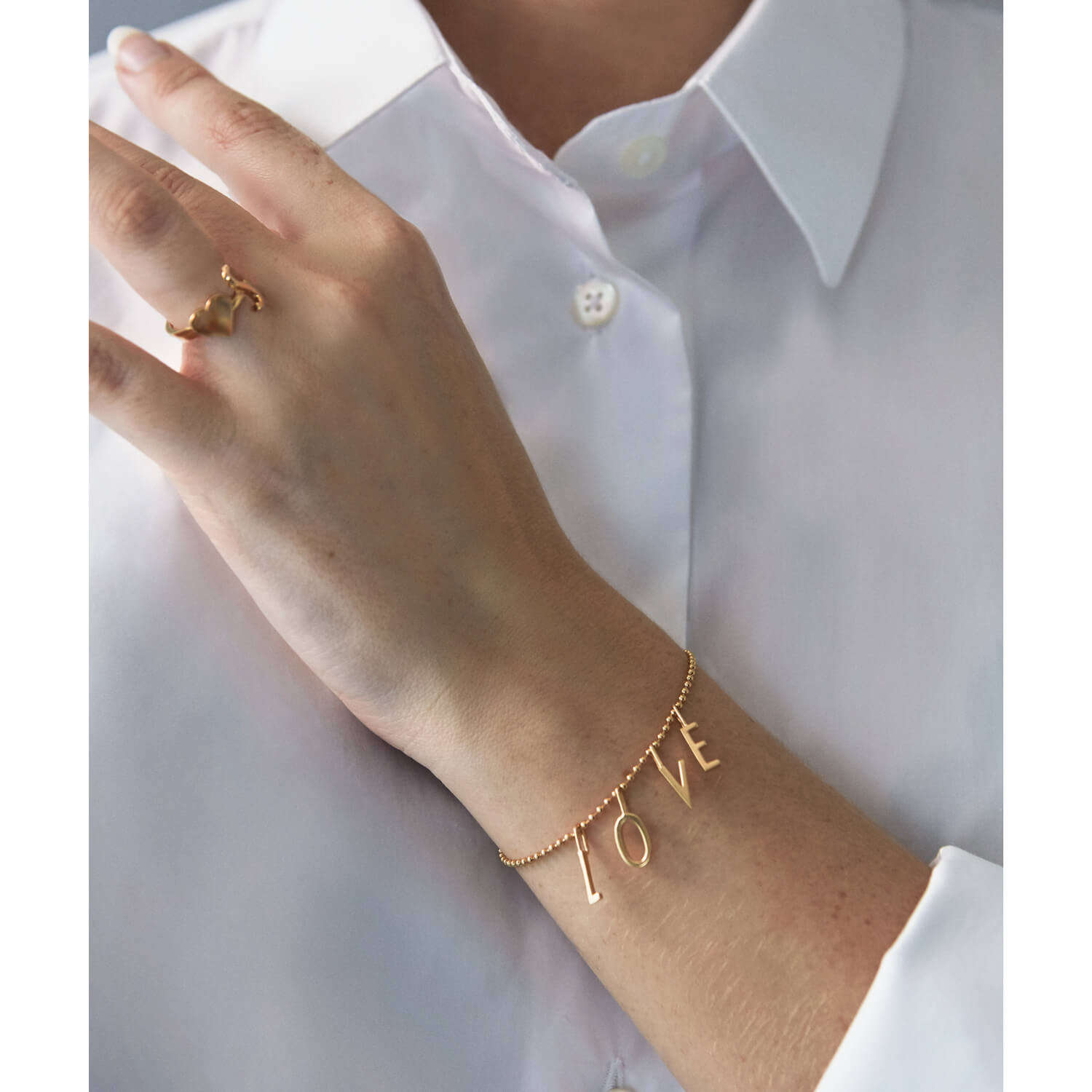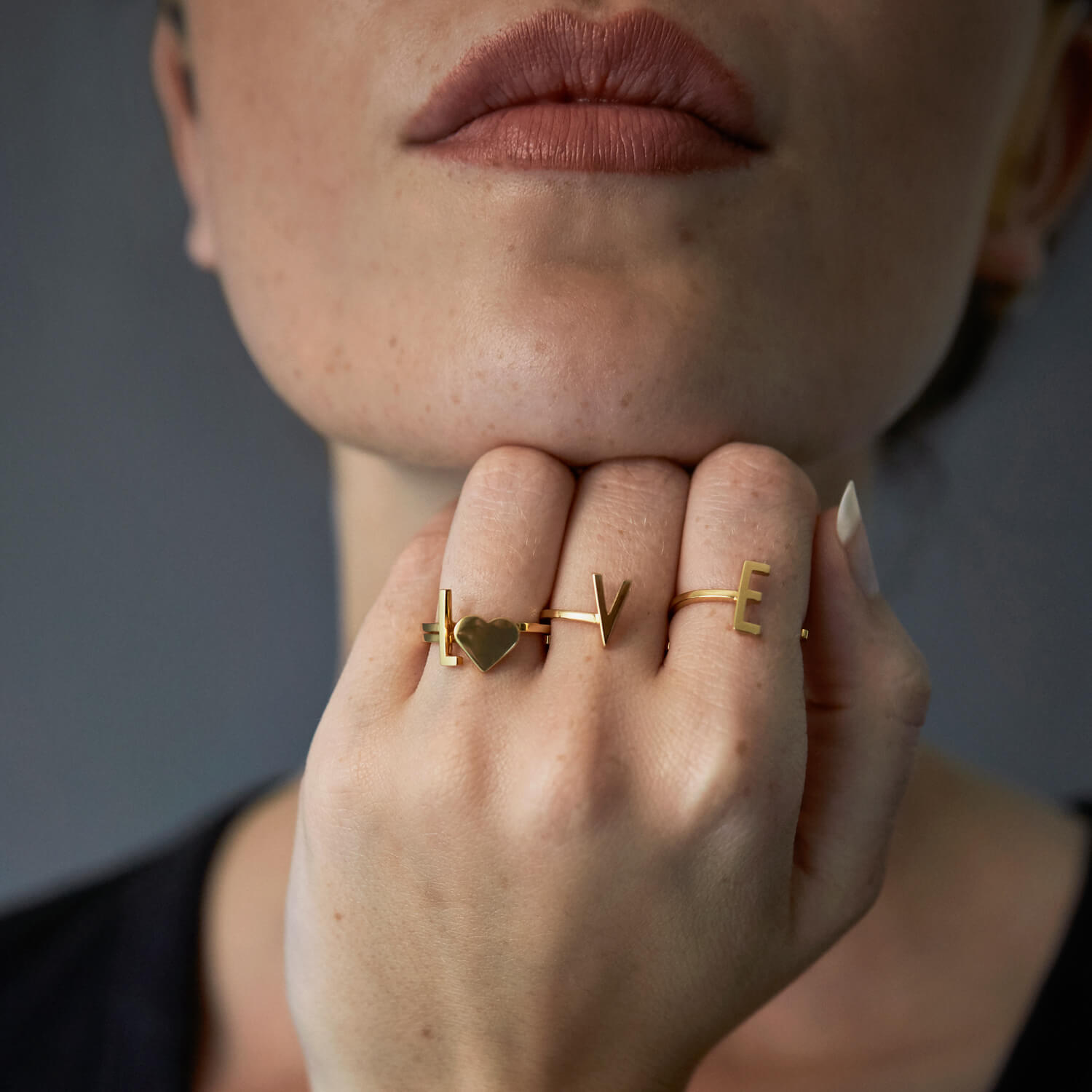 Die Typografie für die Buchstabenanhänger wurde ursprünglich 1937 vom weltbekannten dänischen Architekten und Designer Arne Jacobsen handgezeichnet. Die Oberfläche des Rings ist glänzend, ebenso wie die der Ohrringe und Buchstaben-Anhänger (10 mm). Die Oberfläche aller größeren Buchstaben ist matt und jeder einzelne Anhänger ist handpoliert für ein perfektes Finish. Je nach Stimmung kannst du dein Outfit mit Ring um eine Kette sowie Ohrringe mit weiteren Buchstaben oder süßen kleinen Anhängern (z. B. Herzen, Sterne oder Opale) erweitern und damit vollkommen einzigartig machen!
