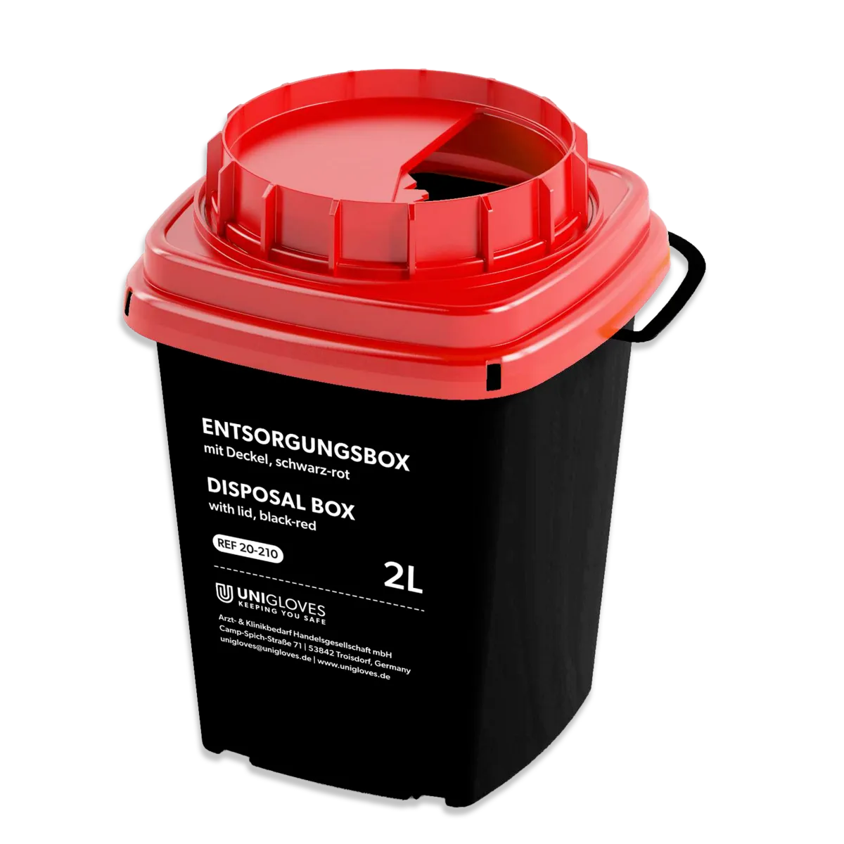 Die Unigloves Entsorgungsbox ist die ideale Lösung zur sicheren und hygienischen Entsorgung von spitzen und scharfen Gegenständen wie Tattoo-Nadeln, Skalpellen, Teströhrchen und mehr. Die großzügige Öffnung ermöglicht eine einfache Handhabung – auch bei größeren Abfallstücken.