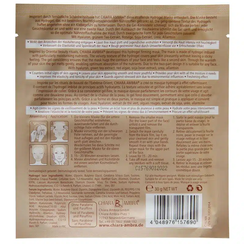 Firming hydrogel face mask with hyaluronic acid and green tea extract Top-quality moisturizing care!