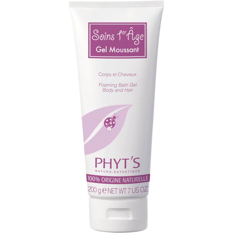 Le Gel Moussant est un gel lavant très doux spĂ©cialement dĂ©veloppĂ© pour nettoyer la peau et les cheveux de bĂ©bĂ©. Gel Moussant fait partie de la gamme Phyt’s Soins 1er Age.