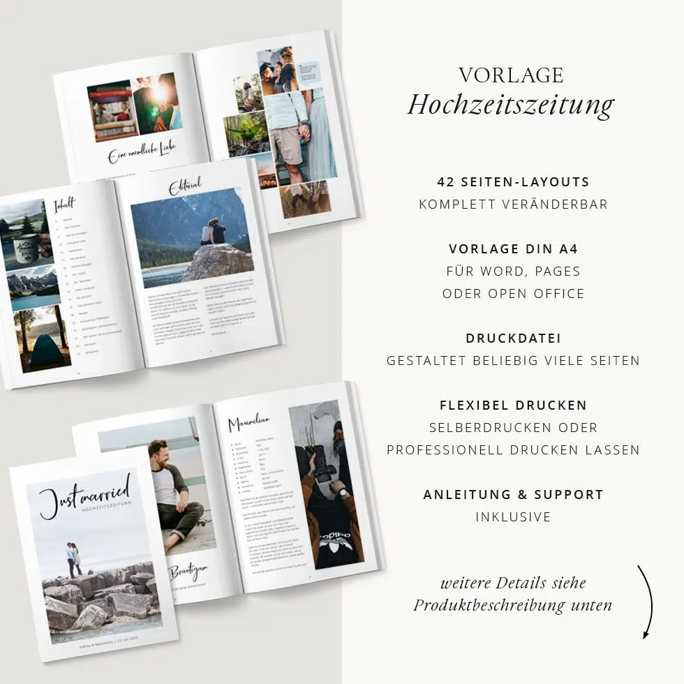 Hochzeitszeitung Vorlage zum Selbstgestalten in Word, Pages & Open Office