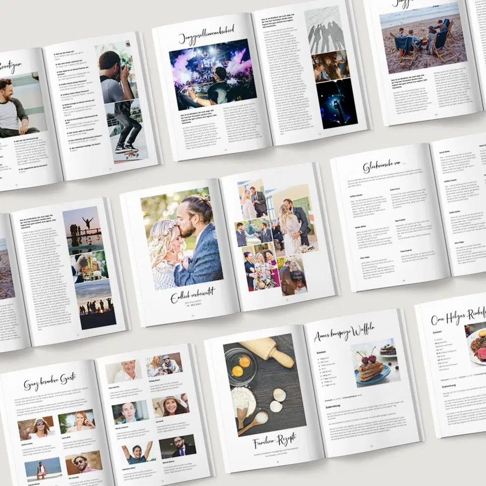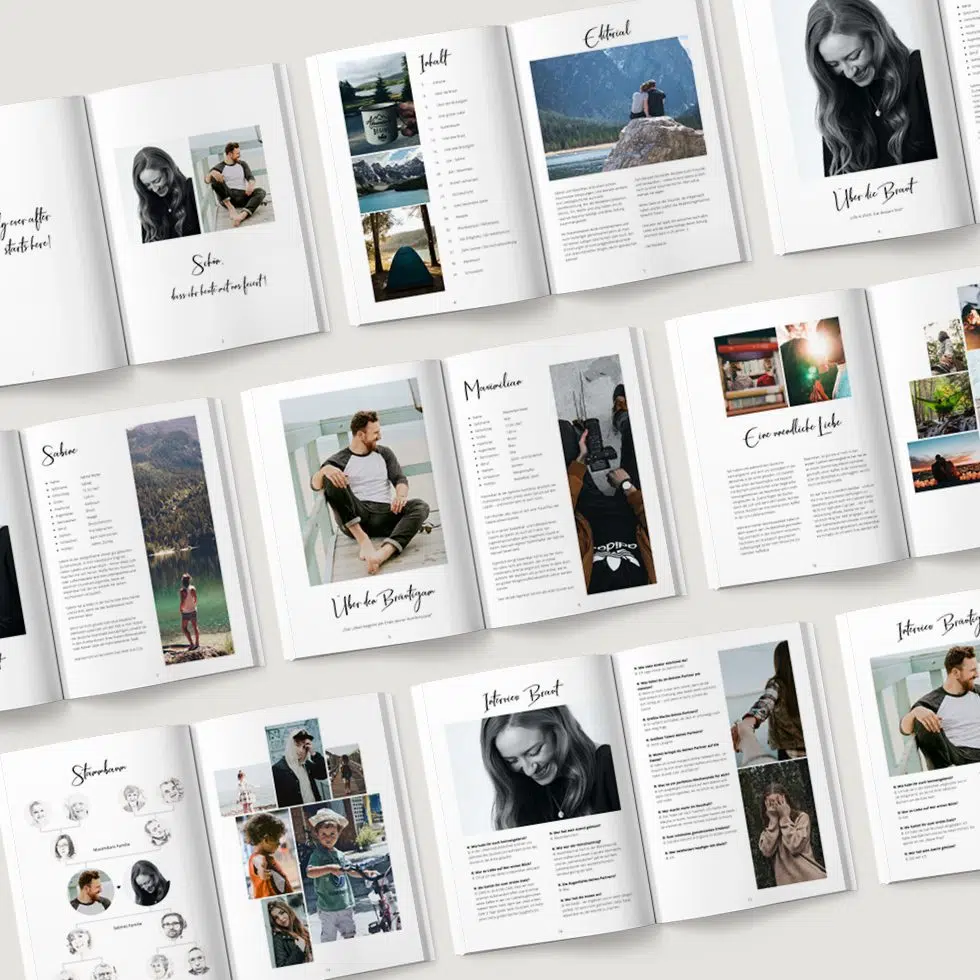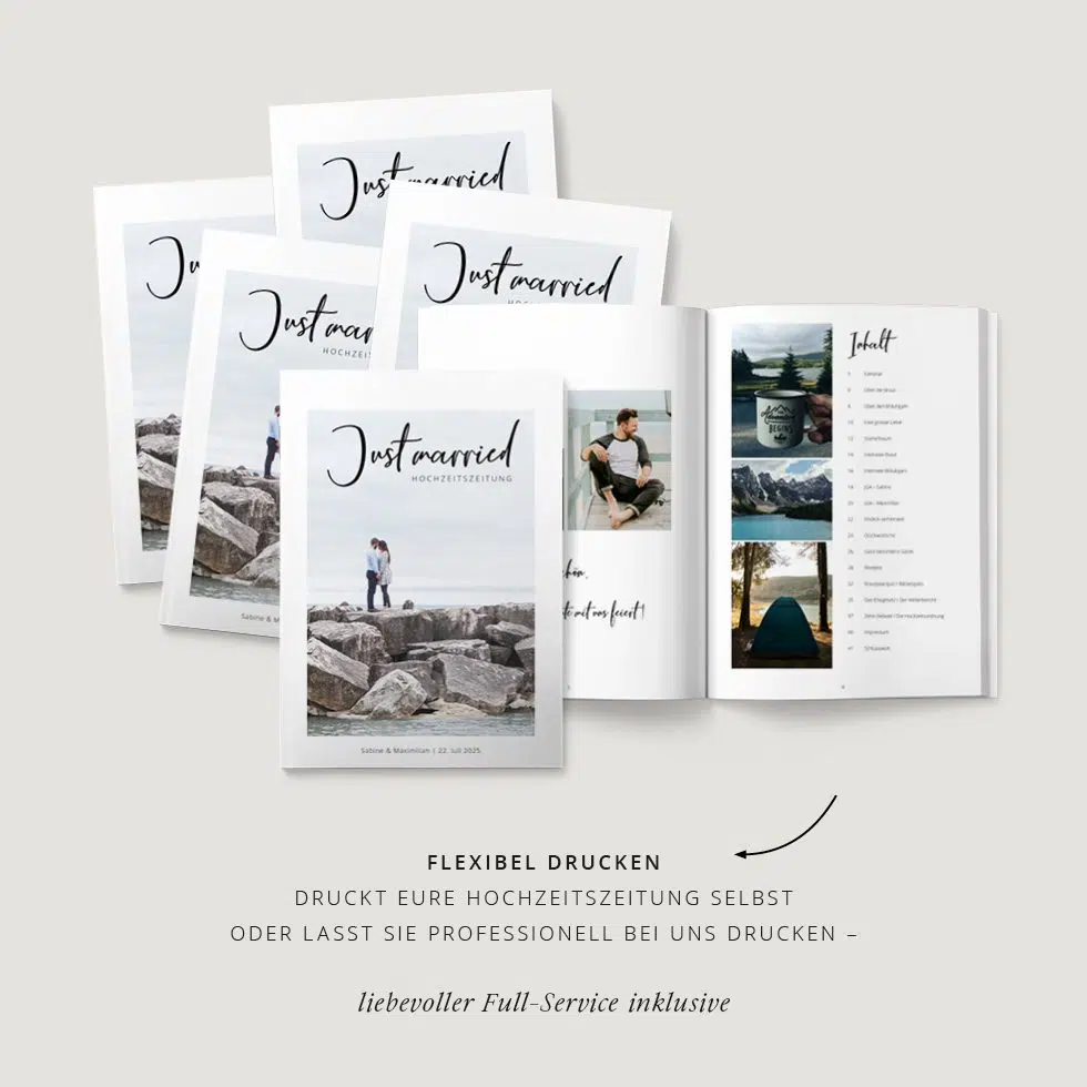 Anschießend könnt ihr eure Hochzeitszeitung bequem mit unserem hochwertigen Druckservice oder ganz einfach selbst drucken.