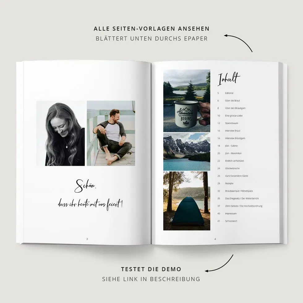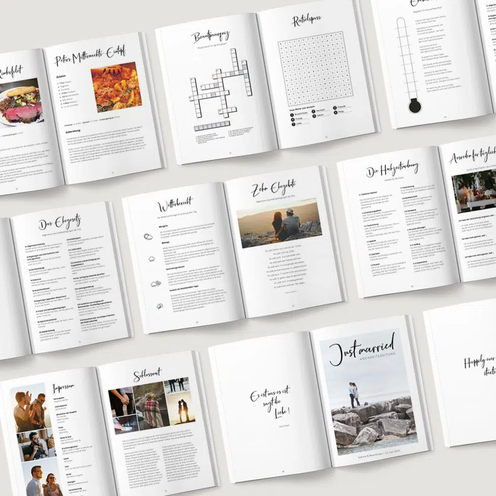 Das ist im Download der Hochzeitszeitung Vorlage enthalten: