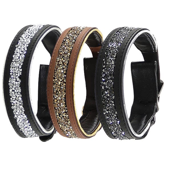 Royal Stone Lederhalsband Hund mit Strasssteinen