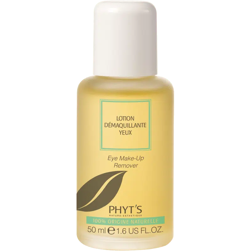La Lotion DĂ©maquillante Yeux nettoie en douceur la peau sensible du contour des yeux . Le maquillage lĂ©ger s’enlève en douceur sans irriter la peau. La Lotion DĂ©maquillante Yeux fait partie de la gamme Phyt’s Soin Nettoyants.