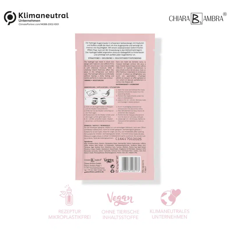 Masque hydrogel raffermissant pour les yeux à base de hyaluron et de caféine –