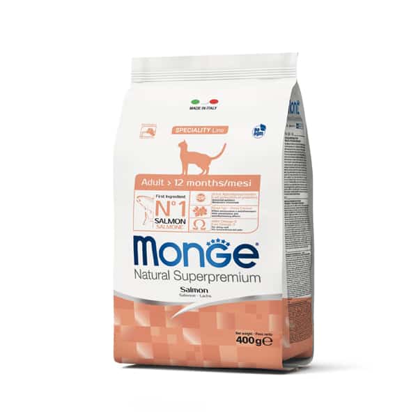 Monge Trockenfutter mit Lachs ist eine ausgewogene Ernährung für ausgewachsene Katzen und bietet eine vollständige Ernährung mit wichtigen Vitaminen, Nährstoffen, Ballaststoffen und hochwertigen Proteinen.