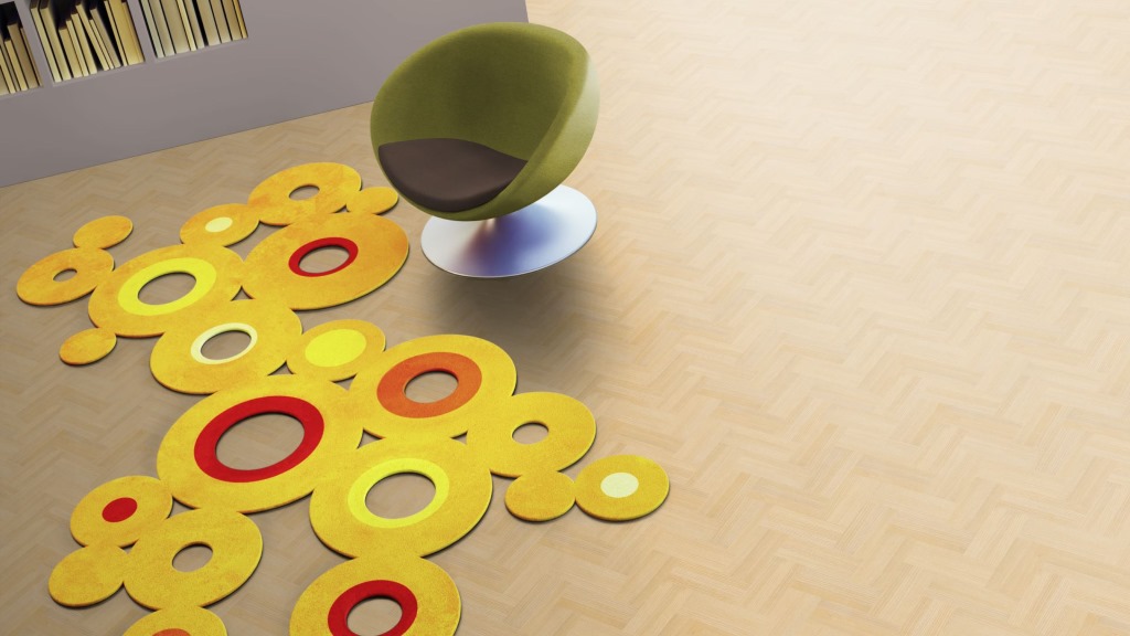 Die einzelnen Stäbe sind lose nebeneinander liegend zu einem Verlege-Element auf Netz zusammengefasst. Das Maß der Musterboden Elemente beträgt ca. 320 x 640mm.