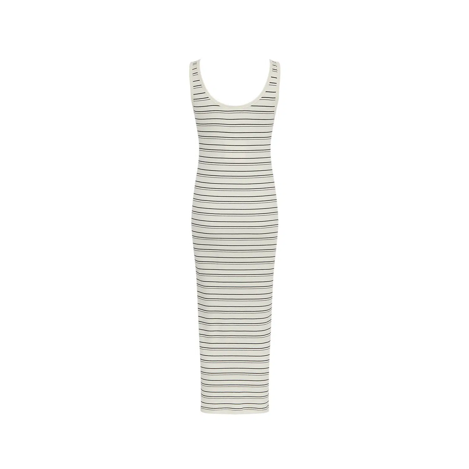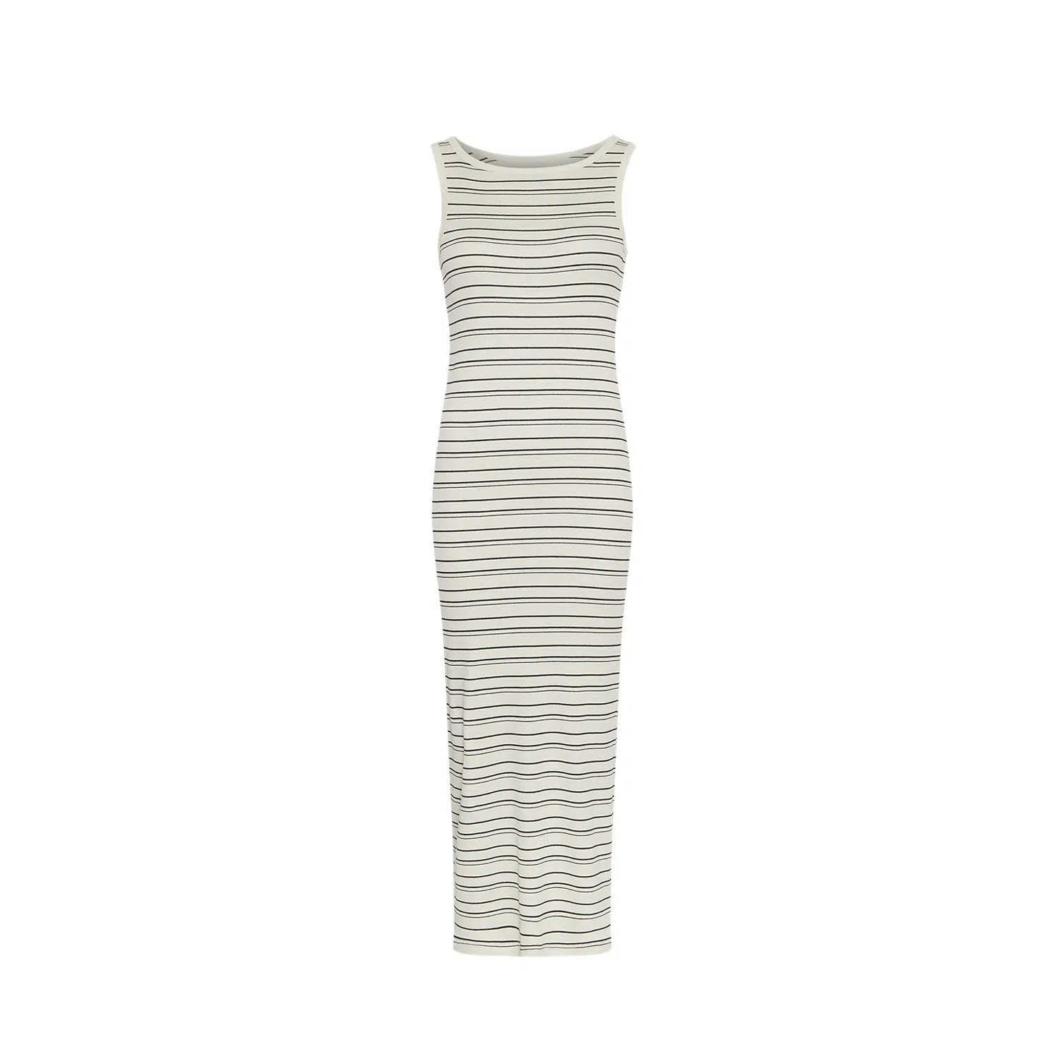 Mit seinem verspielten Look, den Streifen sei Dank, ist es ein IT-Piece fĂĽr jede Jahreszeit, das Leichtigkeit versprĂĽht. Ein sĂĽĂźes Detail des Schlauchkleids ist die feine Ripp-Struktur.