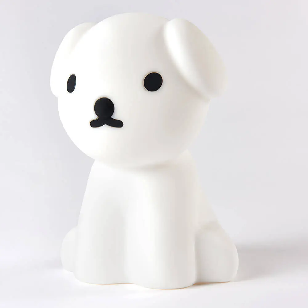 Die Mr Maria Nachtlicht Hund Snuffy misst ca. H 23 x T 19 x L 16 cm. Das First Light ist ein absolutes Highlight in deinem Kinderzimmer. Beim Anblick der süßen Lampe strahlen aber nicht nur Kinderaugen, die Herzen aller Designliebhaber schlagen bei ihr direkt höher. Erwachsenen ist Miffy ebenfalls ein Begriff. Dank Mr Maria erlebt er als praktische Lampe für Nachttisch und Boden ein Comeback und verströmt so auch gleich einen nostalgischen Charme. Zugleich bringt die dekorative Lampe Licht und Gemütlichkeit ins Kinderzimmer. Snuffy der Hund spendet als Nachtlicht Geborgenheit beim Träumen. Durch den integrierten Dimmer sind 6 Modi einstellbar. Somit passt sich Miffy den Bedürfnissen deines Lieblings an. Die LED-Lampe besteht aus Silikon und wird mithilfe zweier Tasten gesteuert. Die Bedienung ist kinderleicht, sodass der Nachwuchs die Lampe schnell selbstständig einstellen kann.