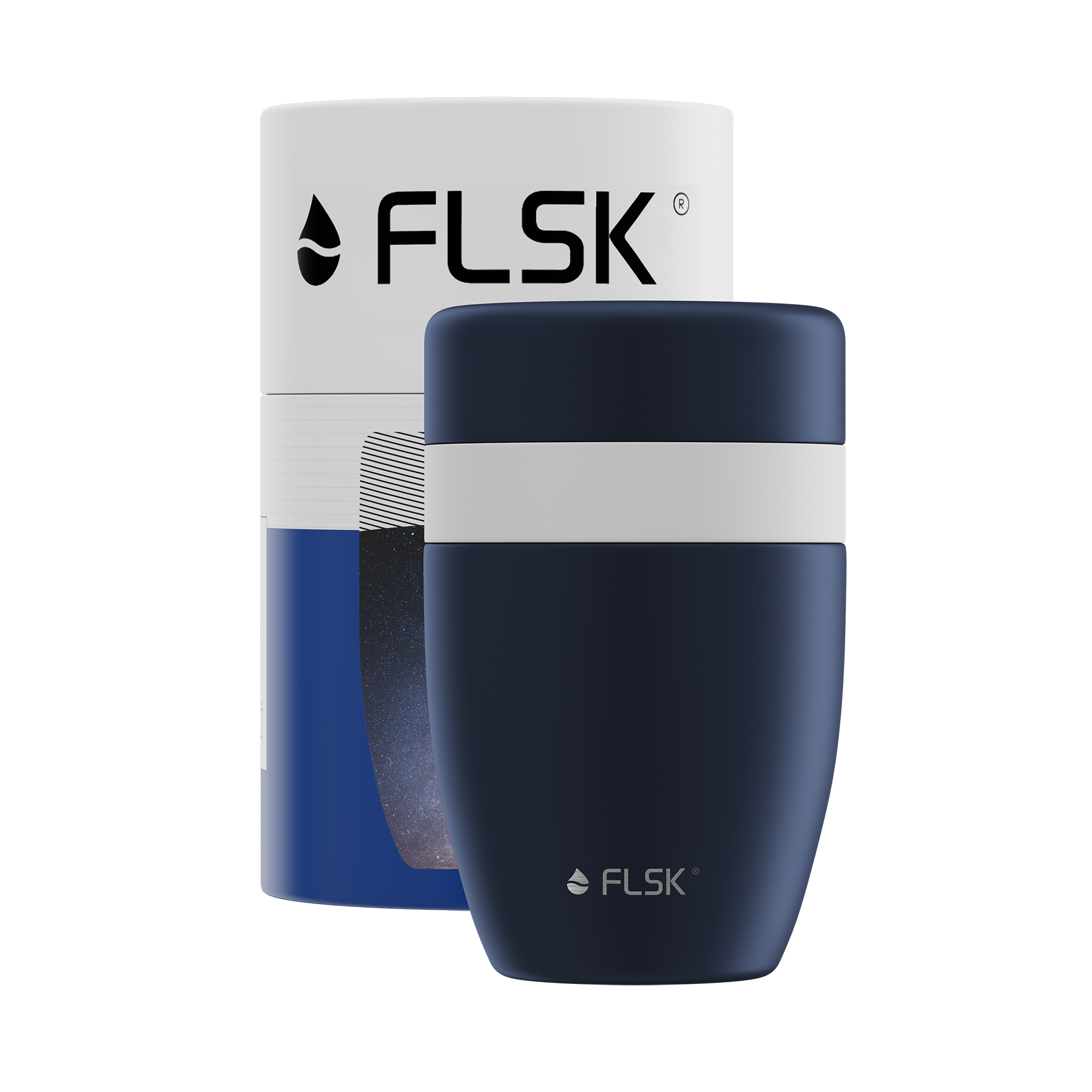 Unterwegs naschen und dippen? Ja, gerne! Aber bitte mit Stil und ohne auszulaufen. Kein Problem für den muki Snackpot, der mit seinen zwei getrennten Behältern für Ordnung bei Ihren Snackzutaten sorgt. Die innovative VICC® Technologie hält Joghurt, Obst und Co. stundenlang auf Temperatur und der pulverbeschichtete Edelstahl sieht in der intensiven Farbe MDNGHT einfach großartig aus. Für mehr Genuss To-Go in Deinem Leben.