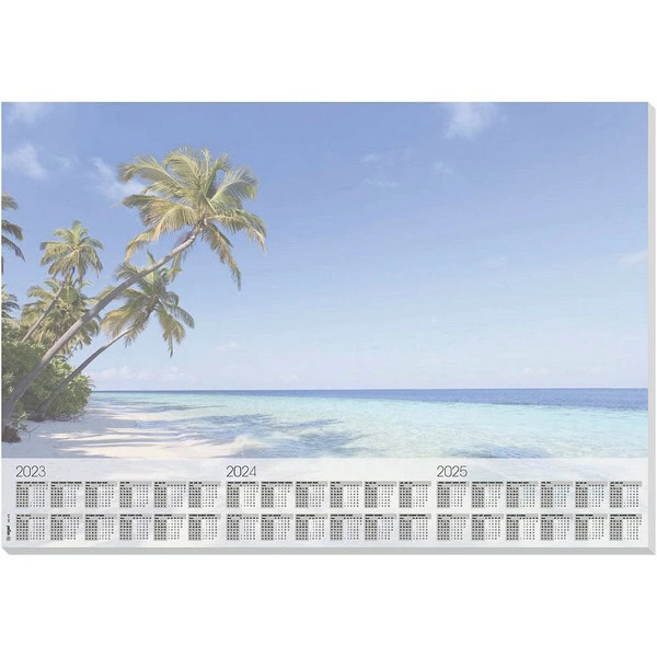 Das Kalendarium erlaubt einen schnellen Überblick über die nächsten Jahre. Dabei bietet die Schreibtischunterlage viel Platz für Notizen, die zum Beispiel beim Telefonieren schnell festgehalten werden sollten.