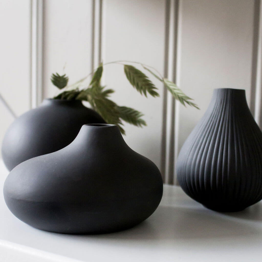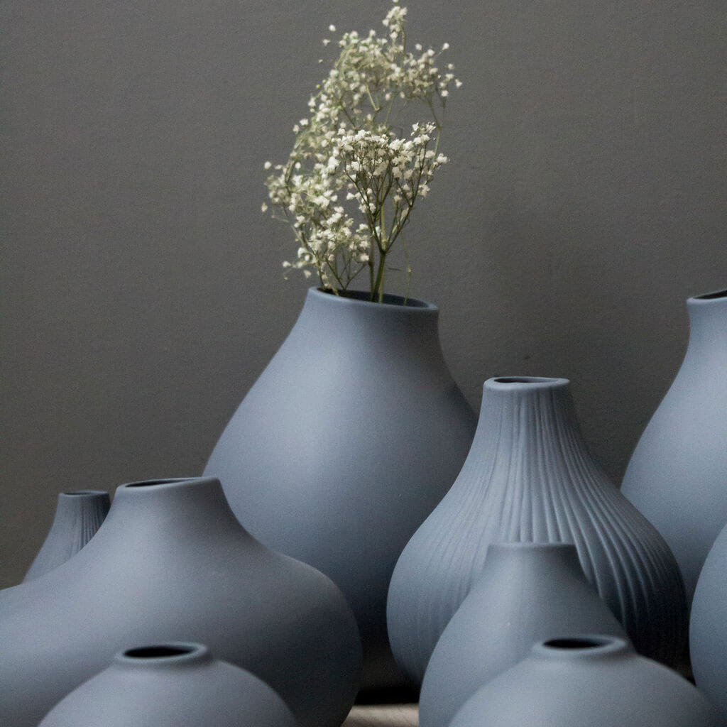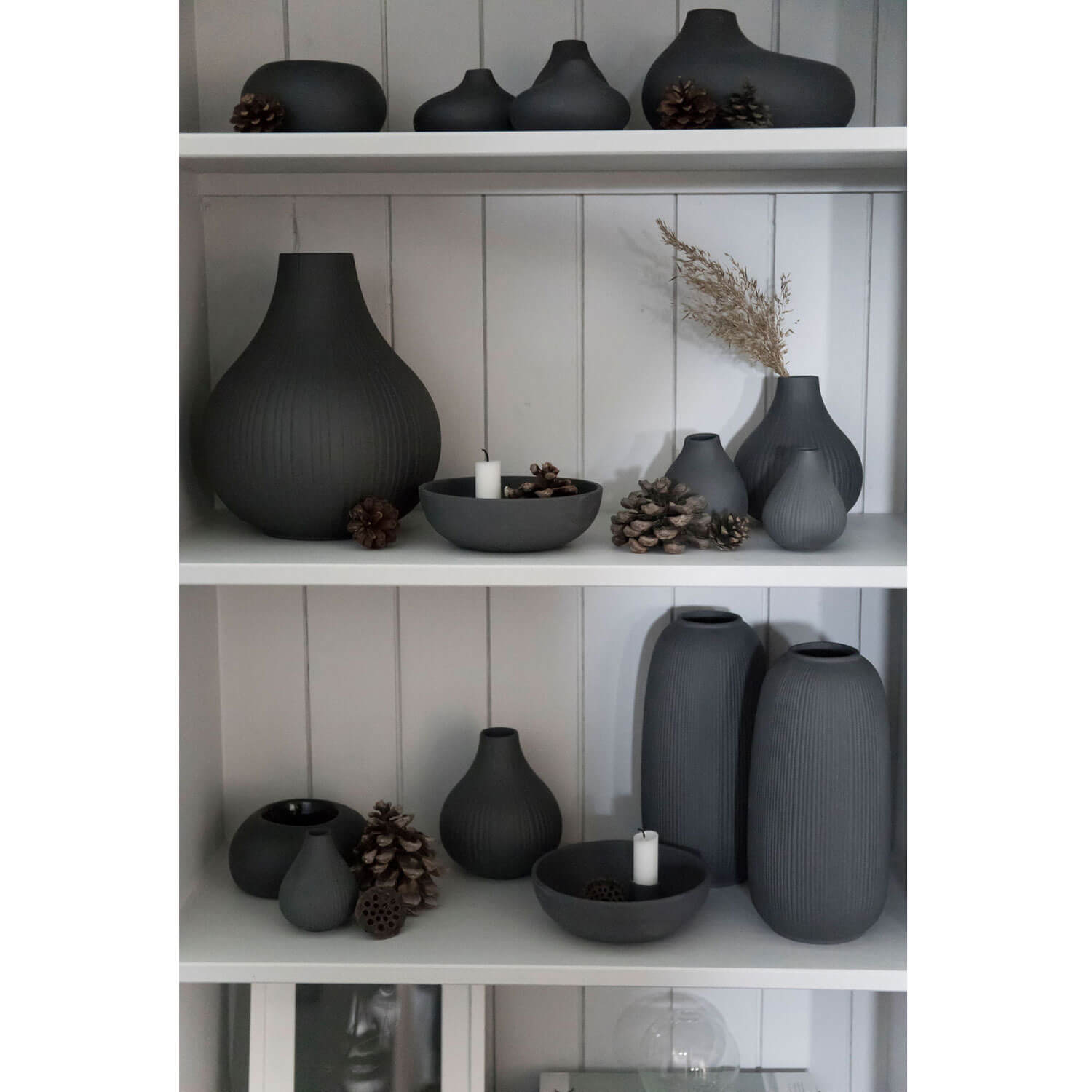 Die wunderschöne Storefactory Vase Grau S der Serie Ekenäs in der Medium Variante misst im Durchmesser 11 cm, in der Höhe 13 cm und hat einen hellen Grauton. Die Keramik verspricht ein cleanes Design und Geradlinigkeit und besticht durch ihre matte und rillenförmige Oberfläche. Durch ein Arrangement der in unterschiedlichen Größen und Farben erhältlichen Vasen der Serie vervollständigt man den Look. Auch zu den Vasen der Serie Aby passt die Keramik perfekt.