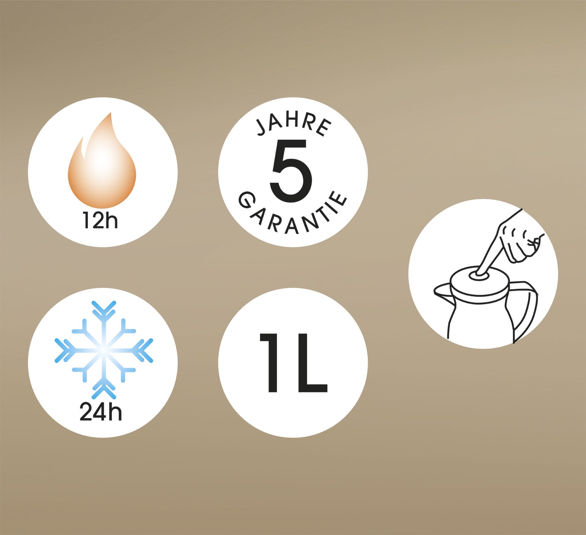 + hält Getränke bis zu 12 h heiß und 24 h kalt