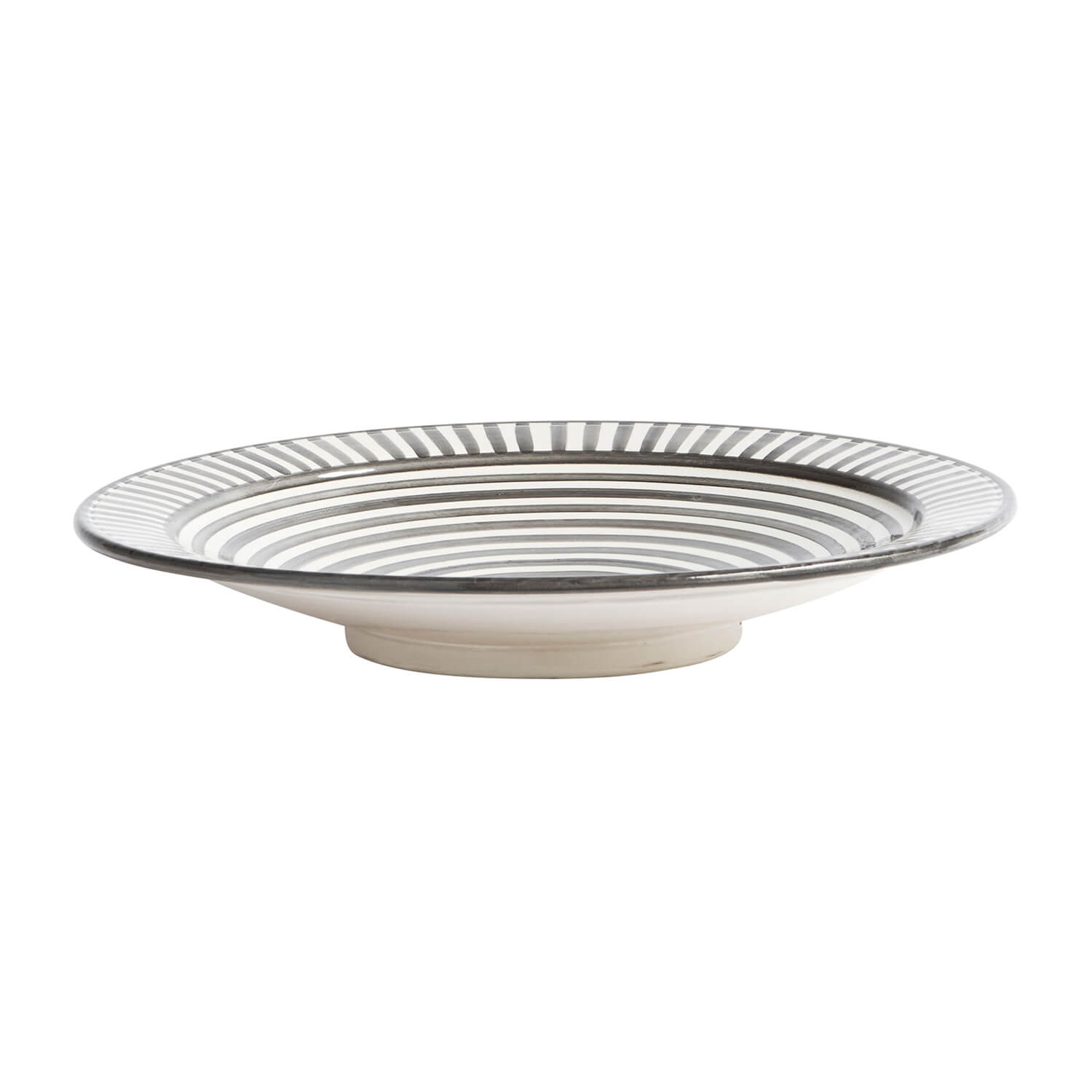 Der TineK Servierteller Grau-Weiß L misst ca. Ø 40 cm x H 6 cm und ist mit dem wunderschönen marokkanischen Streifen-Muster ein echtes Schmuckstück in der Küche oder auf dem Esstisch.