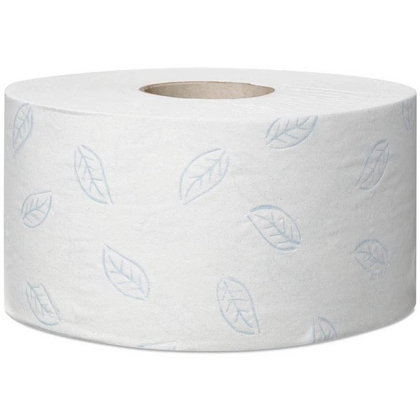 Das 2-lagige Jumbo-Toilettenpapier T2 Premium Mini ist aus saugstarkem Recyclingpapier hergestellt. Es besitzt insgesamt 850 Blätter pro Rolle, welche mit einer blauen Lorbeerblatt-Prägung versehen sind. Die Rollenlänge beträgt 170,0 m. Das weiße, sehr weiche Papier aus Tissue-Material eignet sich optimal für jeden Einsatz.