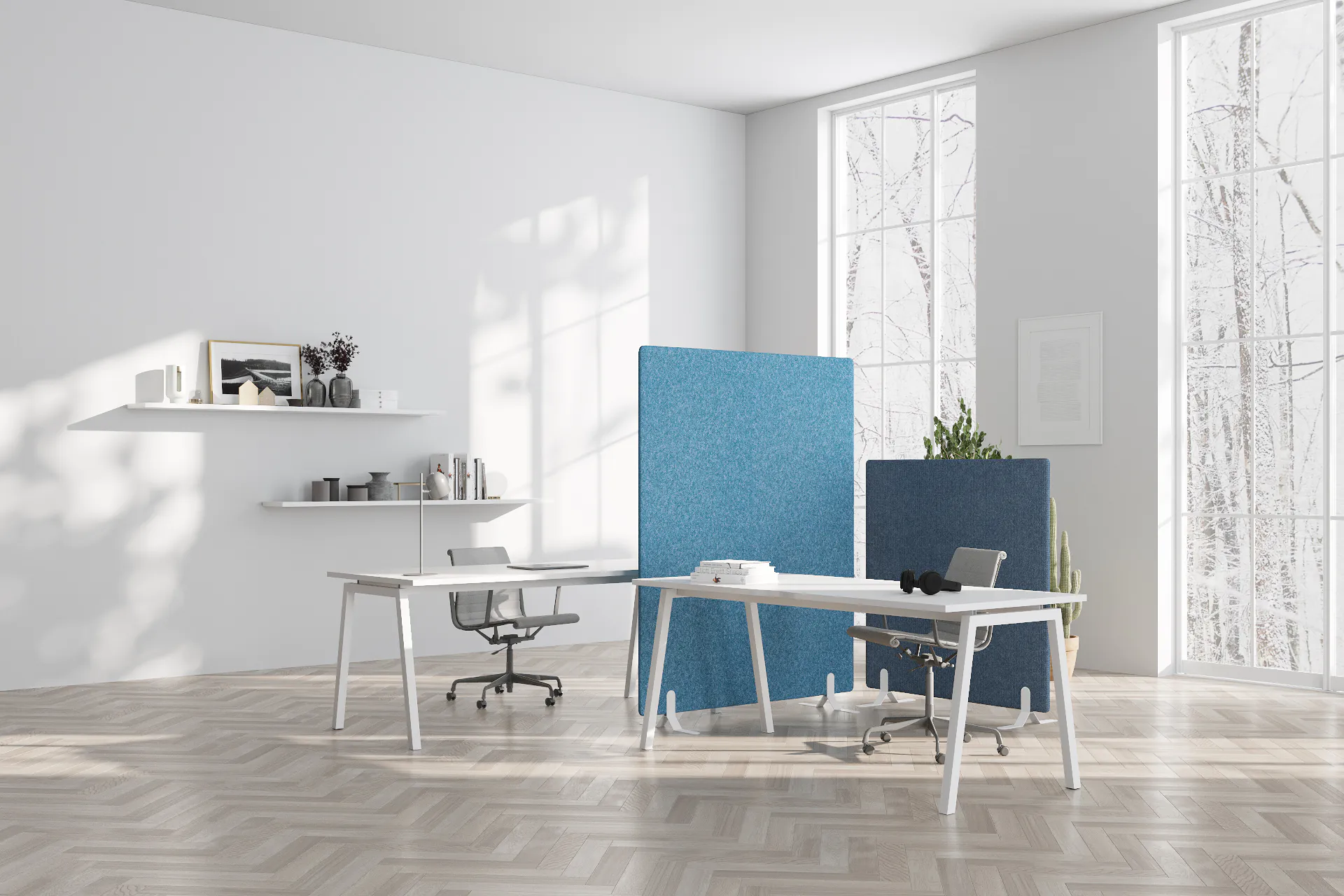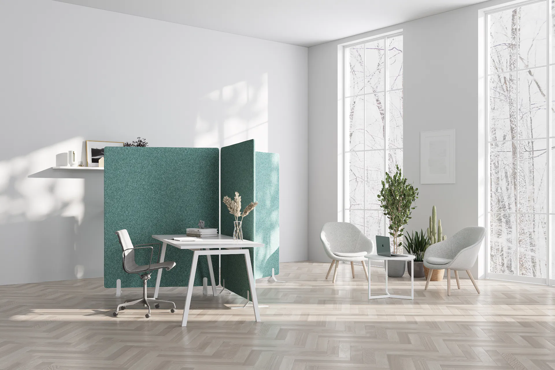 Die Lärmschutzwand ist eine Trennwand mit hoher Schallabsorption, die speziell entwickelt wurde, um den akustischen Komfort während der Arbeit zu verbessern, indem die Auswirkungen störender Elemente aus der Umgebung reduziert werden.