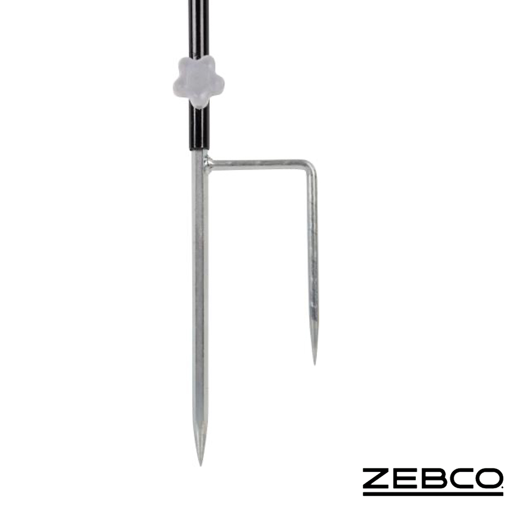 Der doppelte ErdspieĂź verhindert ein Verdrehen des Rutenhalters auch bei Wind.
